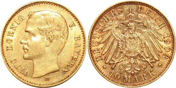 AA210 Germany 10 Marks Otto Bayern 1903 D Or Gold AU ->Make offer