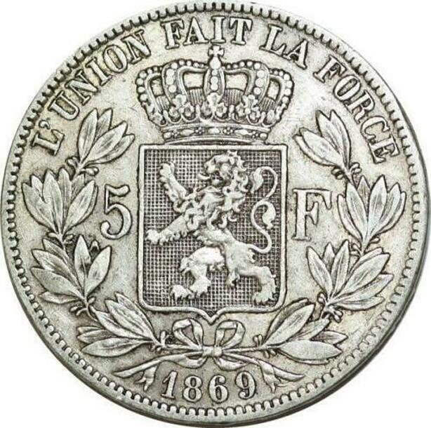 AA414 Belgique 5 Francs Leopold II 1869 Argent Silver ->Make offer