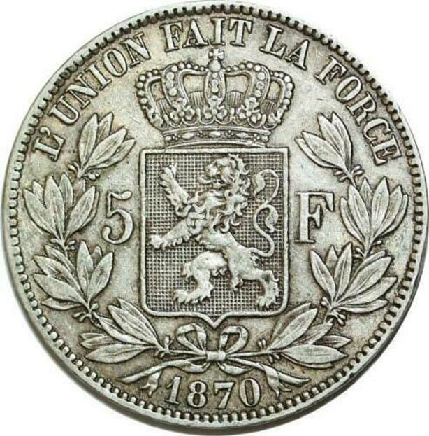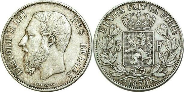 AA415 Belgique 5 Francs Leopold II 1870 Argent Silver ->Make offer