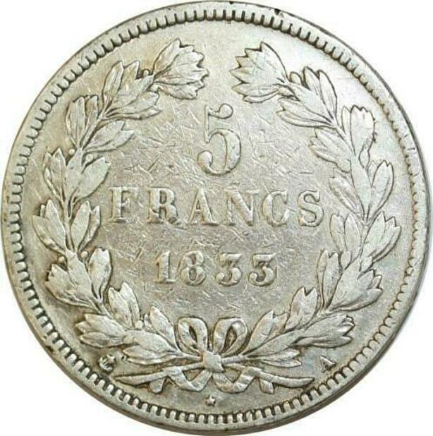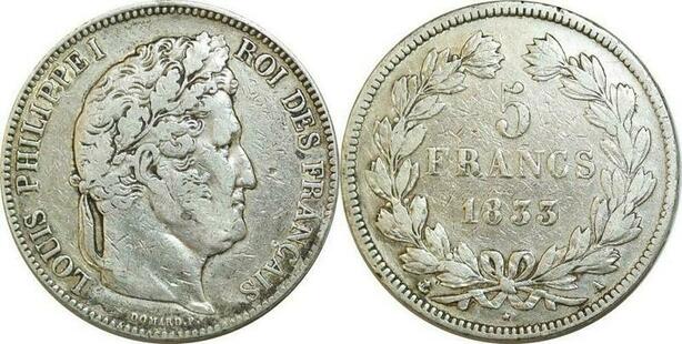 AA418 France 5 Francs Louis Philippe I 1833 A Paris Argent Silver ->Make offer