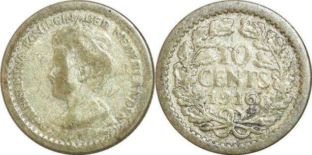 AA424 Netherlands 10 Cents Ducat Wilhelmina 1916 Argent Silver ->Make offer
