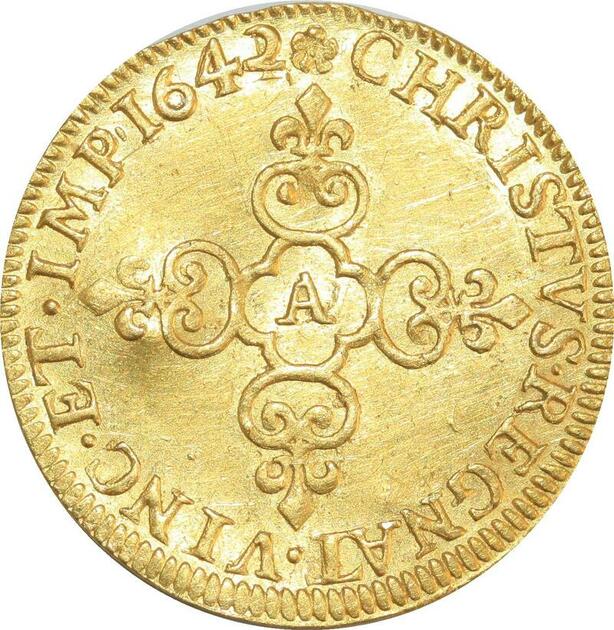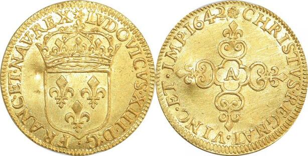AA480 France Ecu d'Or Louis XIII 1642/1 A Paris Frappe Moulin Gold SUP