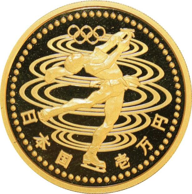 AA488 Japan 10000 Yen Olympics Games Ice Skating Nagano 1998 Or Gold Proof