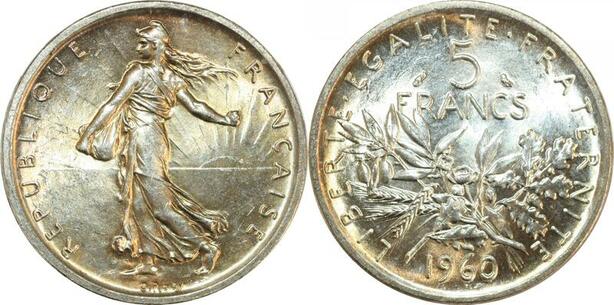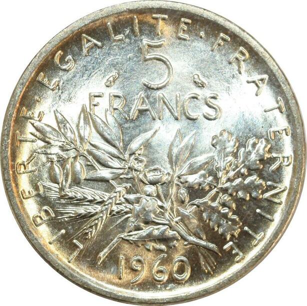 AA491 France 5 Francs Semeuse 1960 Argent Silver FDC ! Un Bijou -> Make offer
