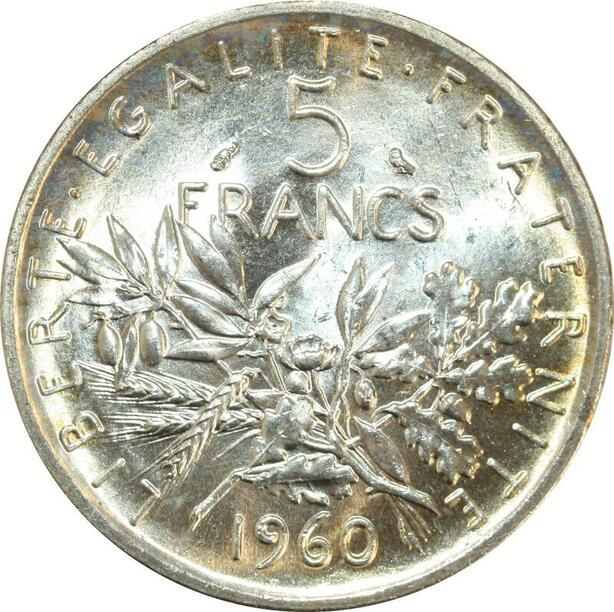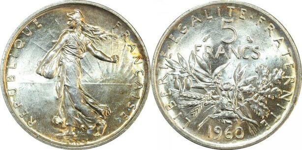 AA492 France 5 Francs Semeuse 1960 Argent Silver FDC ! Un Bijou -> Make offer