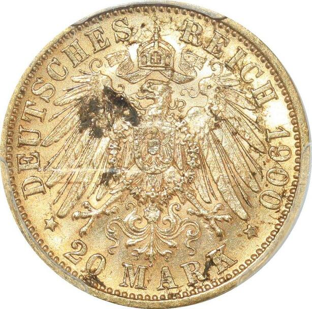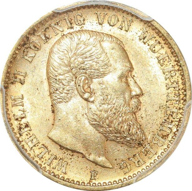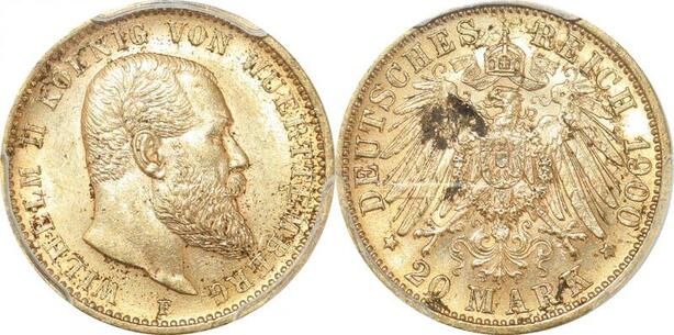 AA503 Germany Wurttemberg 20 Mark Wilhem II 1900 F Or Gold PCGS MS61
