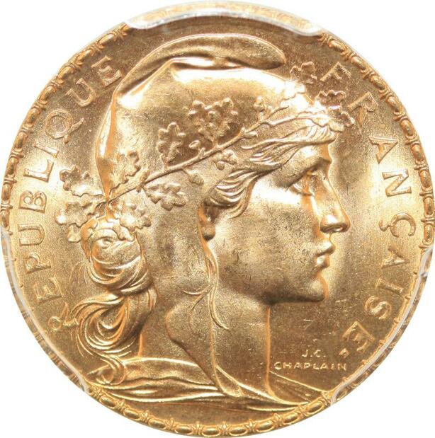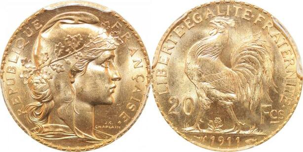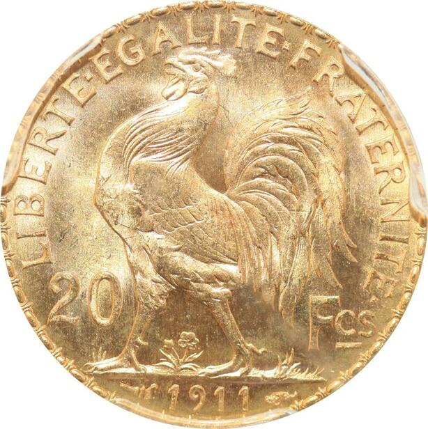AA534 France 20 Francs Coq Rooster 1911 PCGS MS66+ Or Gold GEM -> Make offer