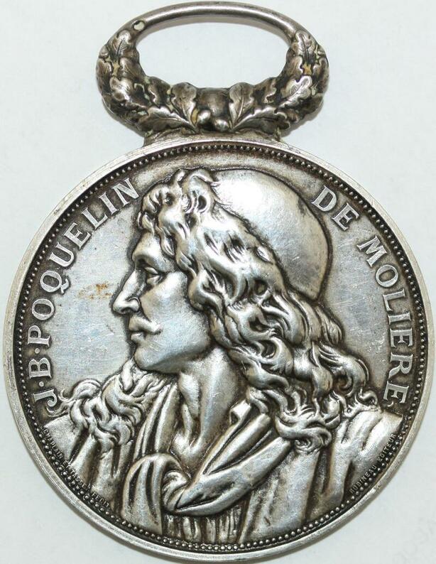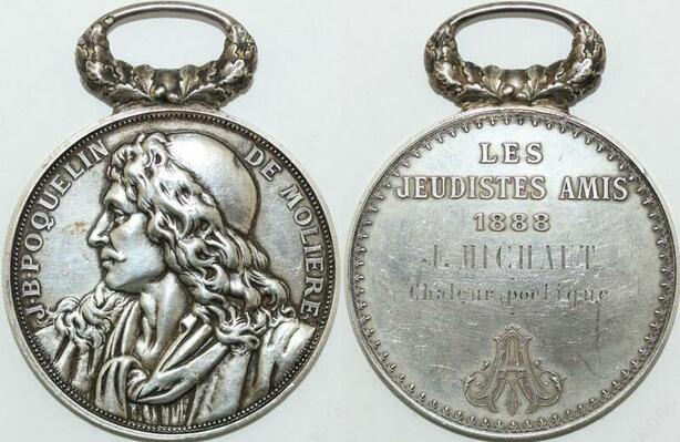 AA553 Médaille Molière JB Poquelin Poète Comédien Jeudistes 1888 Michaut Silver