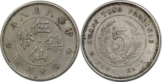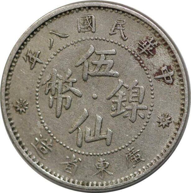 AA566 Rare China Kwangtung 5 Cents 1919 1923 Y-420 Silver -> Make offer