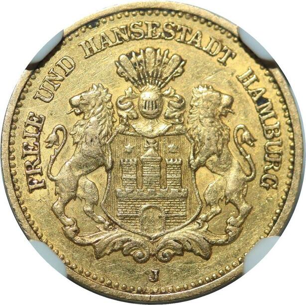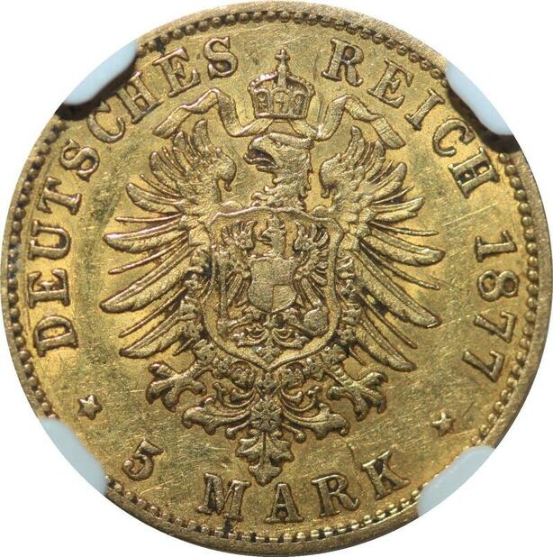 AA651 Rare Germany Hamburg 5 Marks 1877 J Or Gold NGC AU55 -> Make offer