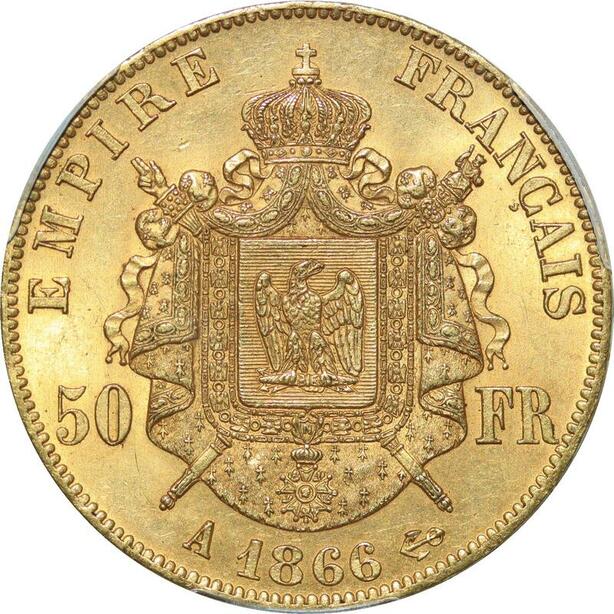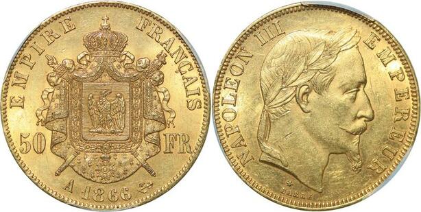 AA667 Rare France 50 Francs Napoléon III 1866 A Paris Or Gold PCGS MS62 ->Offer