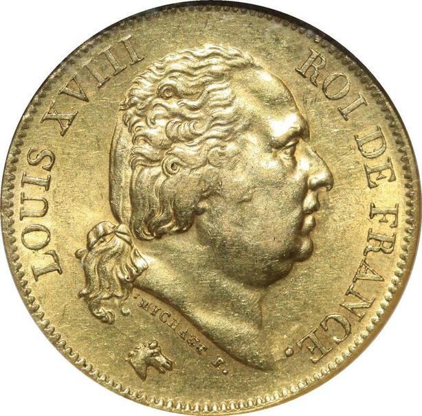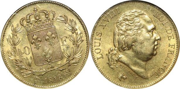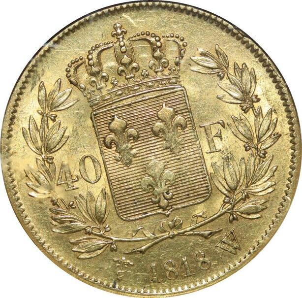AA668 Rare Décentrée France 40 Francs Louis XVIII 1818 W Lille Or Gold NGC AU58 ->M Offer
