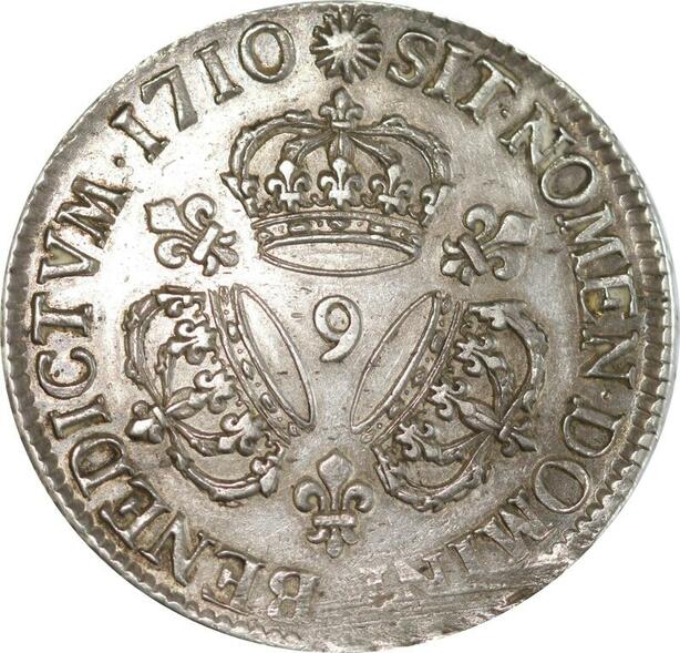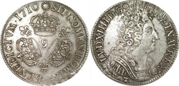 EE0008 Rare Ecu 3 Couronnes Louis XIV 1710 9 Rennes Argent -> F offre