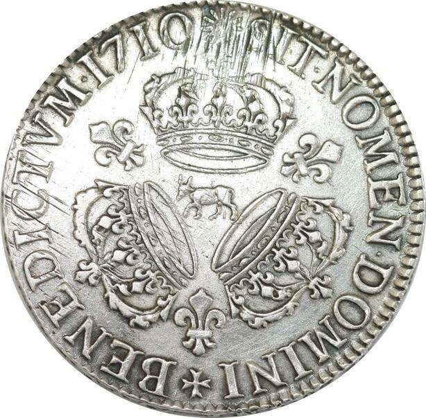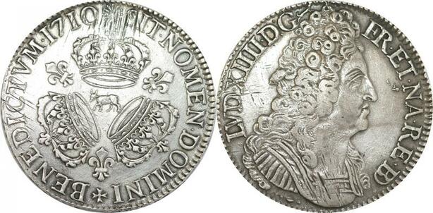 EE0013 Rare Ecu 3 Couronnes Louis XIV 1710 Vachette Pau Argent -> F offre