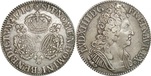 EE0015 Rare Ecu 3 Couronnes Louis XIV 1710 C Caen Argent -> F offre
