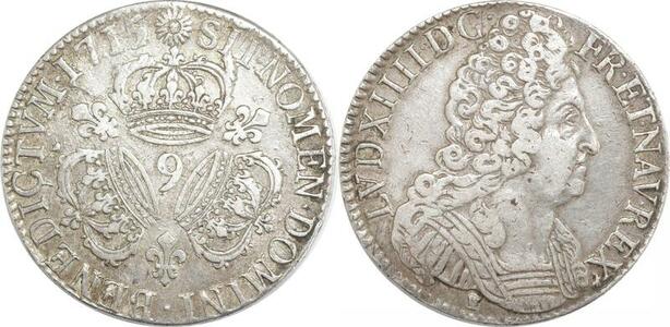 EE0037 Rare R2 Ecu 3 Couronnes Louis XIV 1715 9 Rennes Argent -> F offre