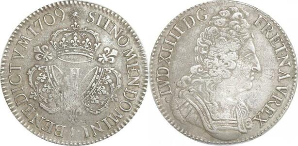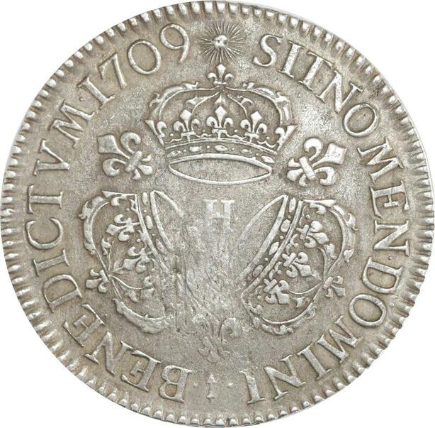 EE0040 Rare Ecu 3 Couronnes Louis XIV 1709 H La Rochelle Argent -> F offre