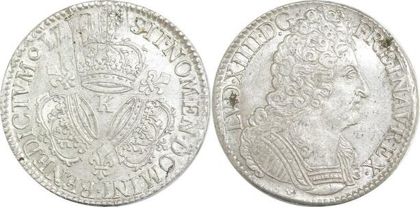 EE0043 Rare R3 Ecu 3 Couronnes Louis XIV 1712 K Bordeau Argent -> F offre