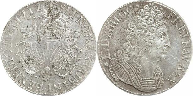 EE0048 Rare R3 Ecu 3 Couronnes Louis XIV 1712 L Bayonne Argent -> F offre