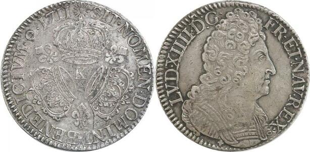 EE0056 Rare Ecu 3 Couronnes Louis XIV 1711 K Bordeaux Argent -> F offre