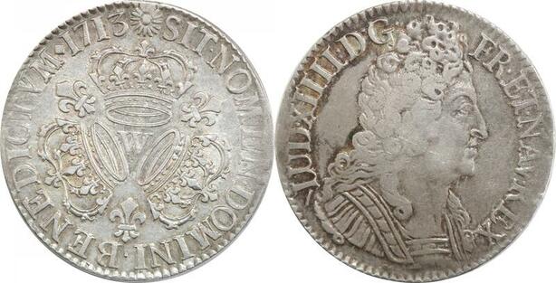 EE0060 Rare Ecu 3 Couronnes Louis XIV 1713 W Lille Argent -> F offre