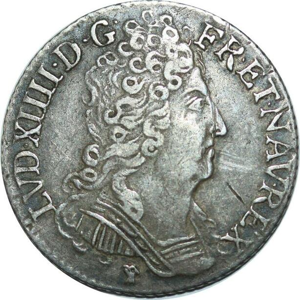 EE0076 Rare 1/10 Ecu 3 couronnes Louis XIV 1715 D Lyon Argent -> F offre