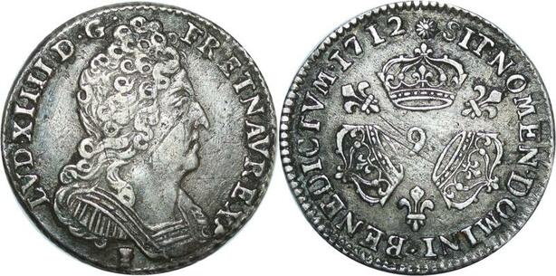 EE0080 Rare 1/10 Ecu 3 couronnes Louis XIV 1712 9 Rennes Argent -> F offre