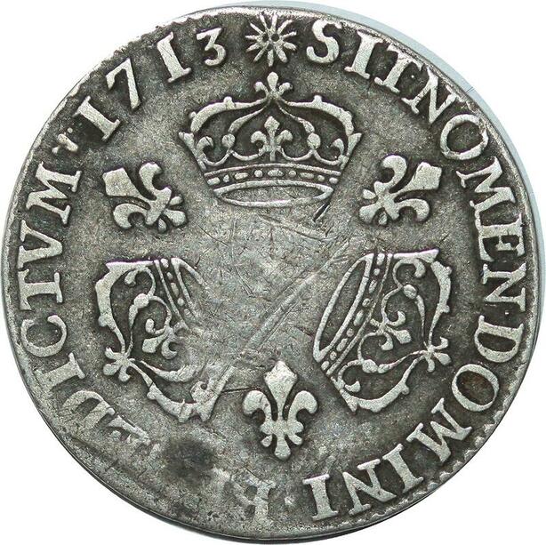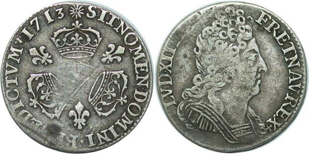 EE0094 Rare 1/10 Ecu 3 couronnes Louis XIV 1713 X Amiens Argent -> F offre
