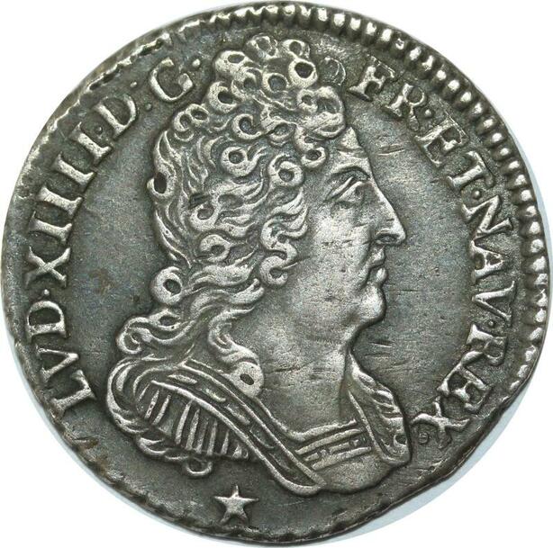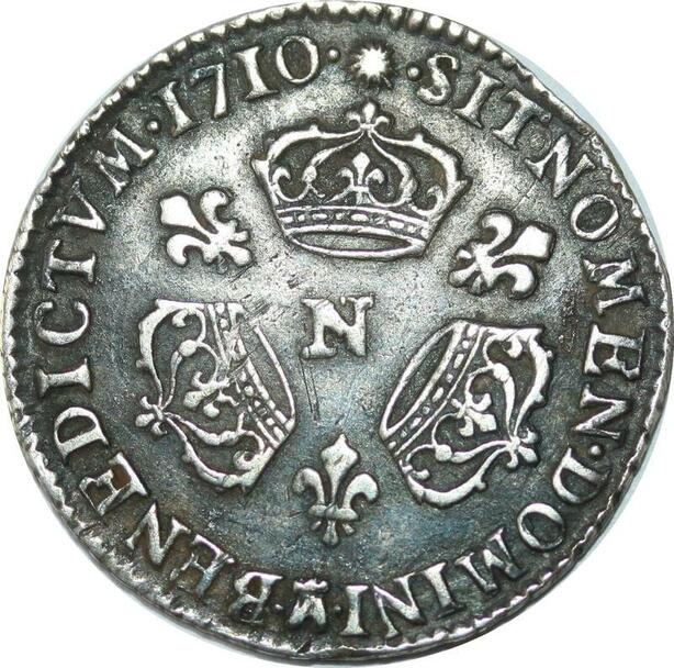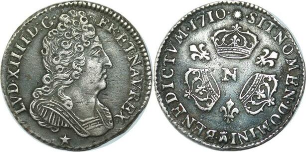 EE0128 Rare 1/10 Ecu 3 couronnes Louis XIV 1710 N Montpellier Argent >offre
