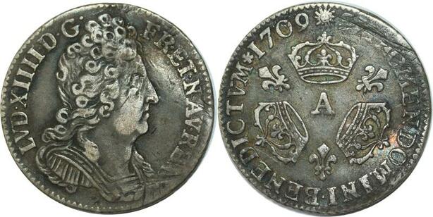EE0130 Rare 1/10 Ecu 3 couronnes Louis XIV 1709 A Paris Argent -> F offre