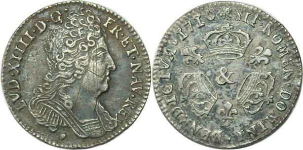 EE0135 Rare 1/10 Ecu 3 couronnes Louis XIV 1710 & Aix-en-Provence Argent