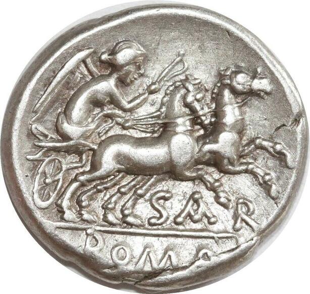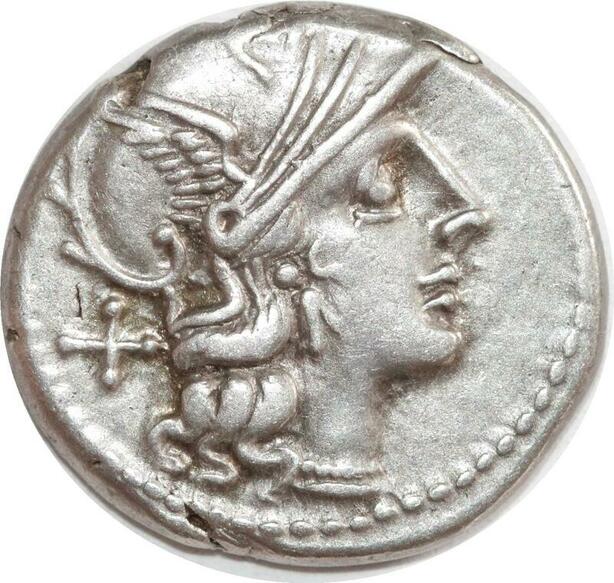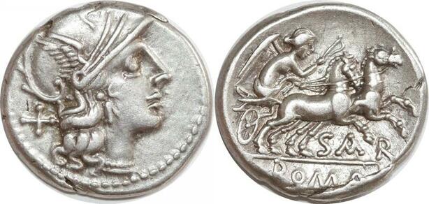 EE0194 Rare Roman Empire Denarius Atilius Saranus SAR Roma 155 BC Silver AU