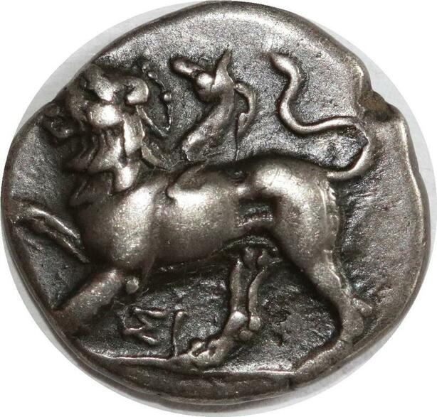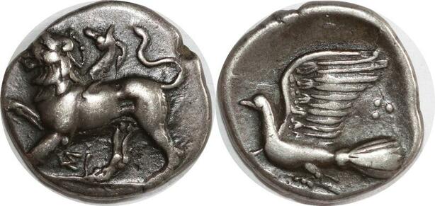 EE0204 Rare Greek Sykionia Hemidrachm 4th c BC Lion Colombe Silver AU