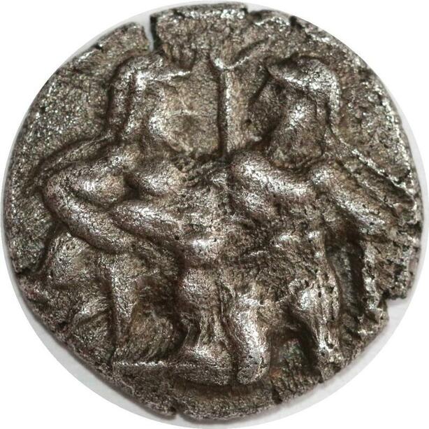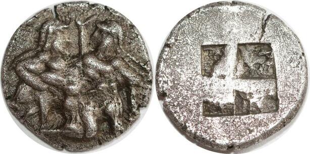 EE0208 Rare Greek Thrace Thasos Drachm Nude satyr incuse sq. 500 BC Silver