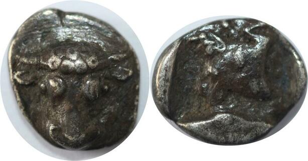 EE0216 Rare Greek Thessalia Larissa Obole Bull Horse 479-465 BC Silver