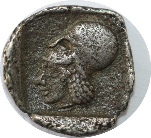 EE0217 Rare Greek Mysia Lampsakos Obole Janiform female heads Athena