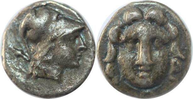 EE0221 Greek Pisidia Selge Obole Gorgoneion Athena 350-300 BC Silver