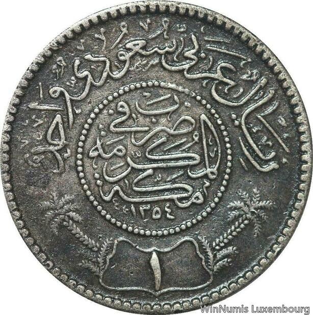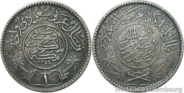 R6005 Saudi Arabia 1 Riyal Abd Al-Aziz bin Sa'ud AH 1354 1935 Silver -> M offer