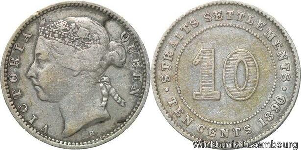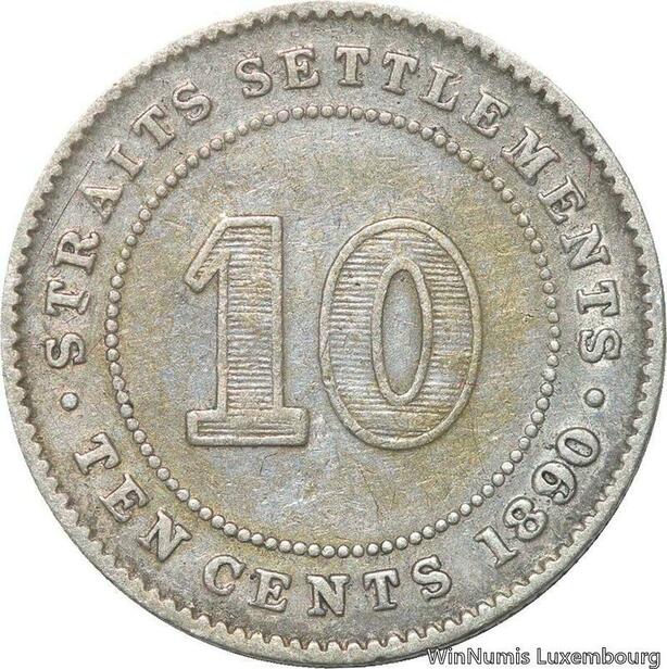 R6081 Malaysia Straits Settlements 10 Cents Victoria 1890 H Heaton Silver