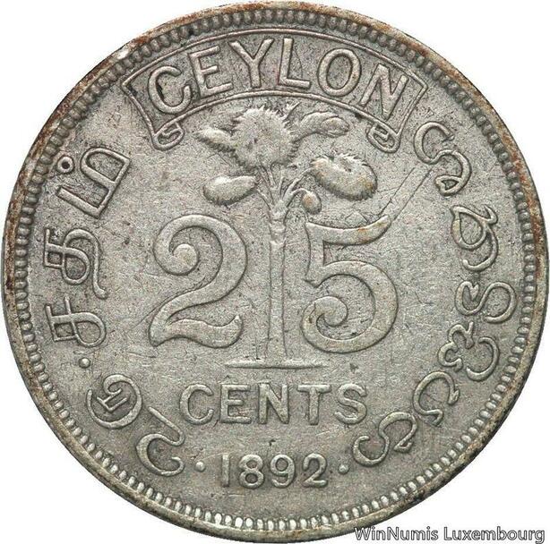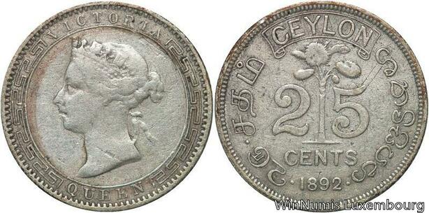 R6083 Sri Lanka Ceylon 25 Cents Victoria 1892 Silver -> Make offer