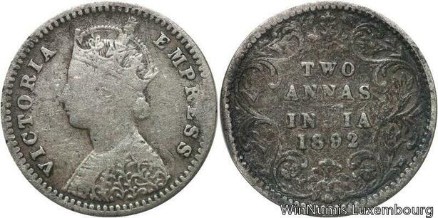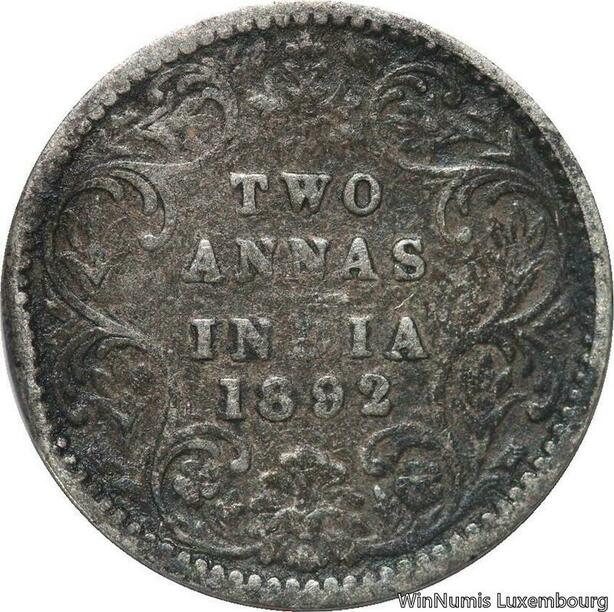 R6093 British India 2 Annas Victoria 1892 Silver -> Make offer