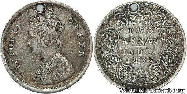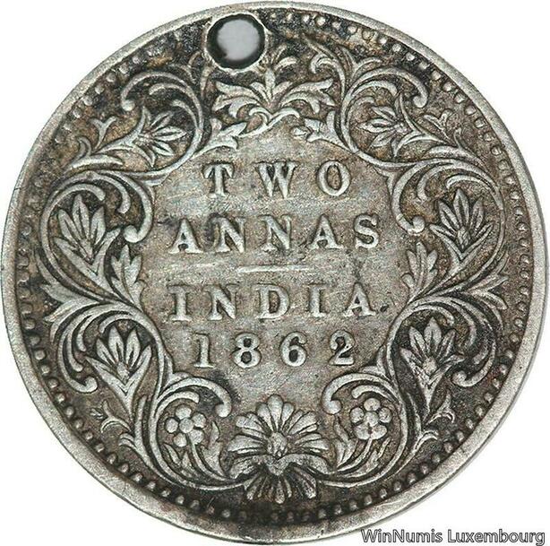 R6095 British India 2 Annas Victoria 1862 Silver -> Make offer