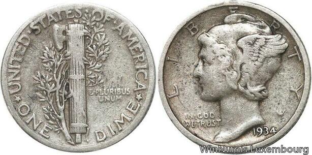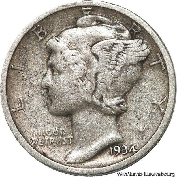 R6109 United States One Dime Mercury 1934 Silver -> Make offer