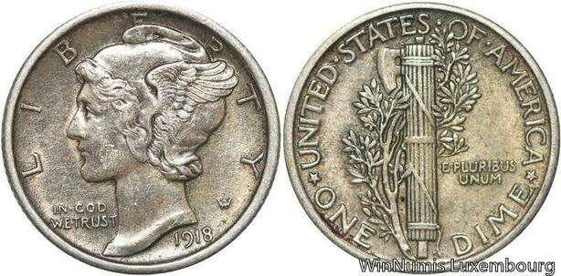 R6115 United States One Dime Mercury 1918 Silver -> Make offer