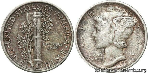 R6122 United States One Dime Mercury 1918 S San Francisco Silver -> Make offer