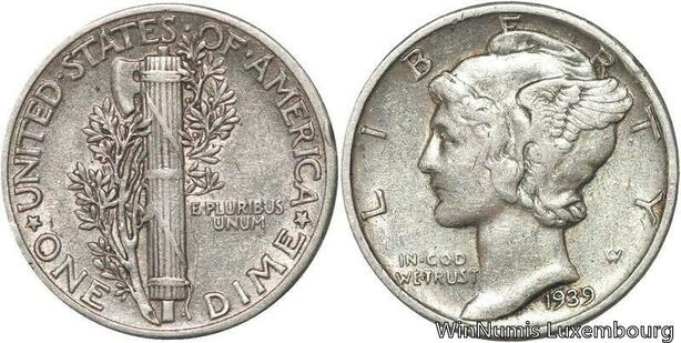 R6124 United States One Dime Mercury 1939 Silver AU -> Make offer