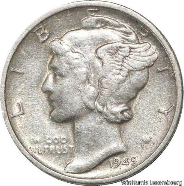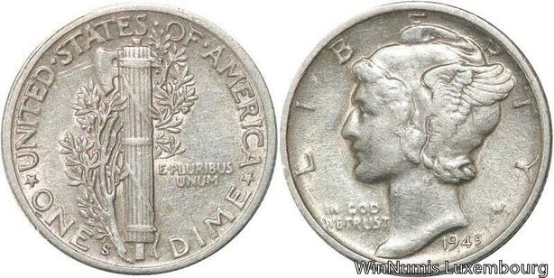 R6128 United States One Dime Mercury 1945 S San Francisco Silver AU ->Make offer
