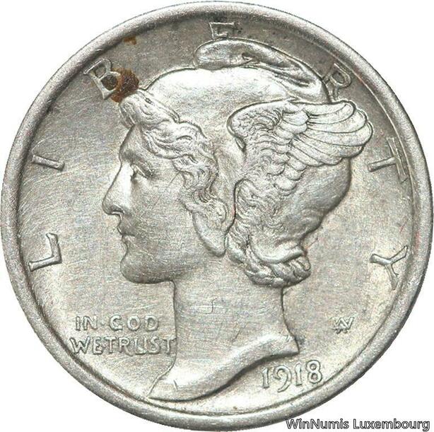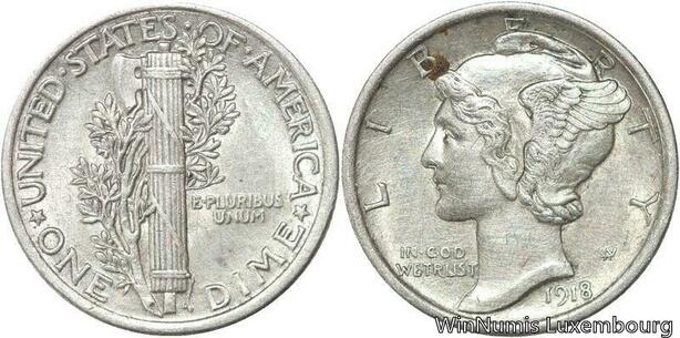 R6133 United States One Dime Mercury 1918 Silver AU -> Make offer
