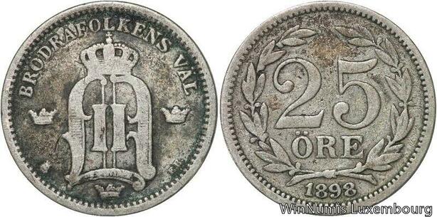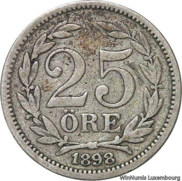 R6139 Sweden 25 Öre Oscar II 1898 EB Silver -> Make offer