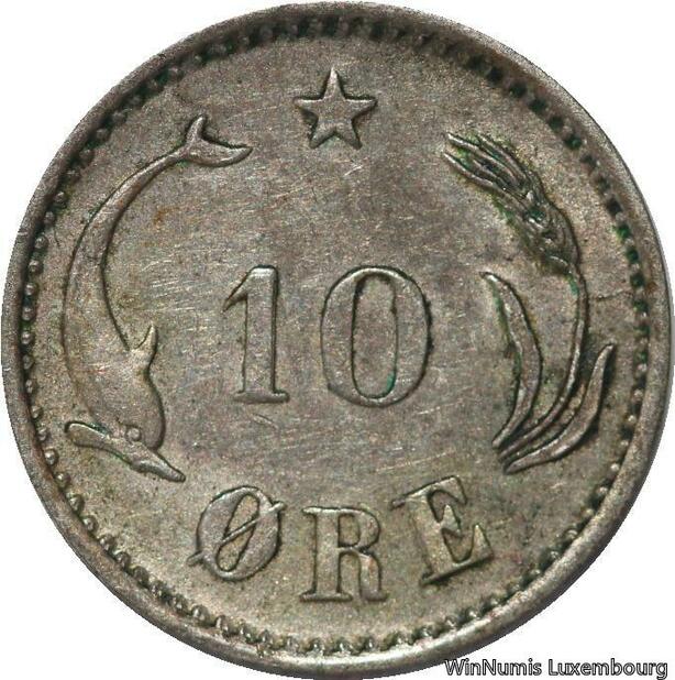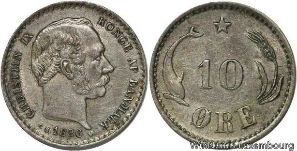 R6149 Rare Denmark 10 Ore Christian IX 1886 CS Silver 508K minted -> Make offer